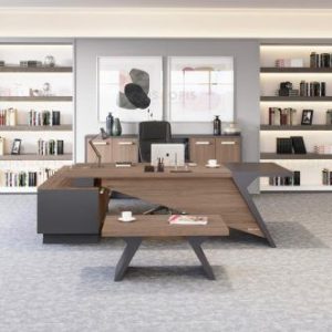 يتميز مكتب المدير من فن المكاتب للأثاث المكتبي بتصاميم عصرية وفاخرة تلبي حاجات المديرين وتعطيهم الراحة اللازمة للعمل بكفاءة. حيث يتم صناعة المكتب من الخشب عالي الجودة، ونحن المستوردون للخشب مما يجعله قويا ودائما، ويأتي بأبعاد مناسبة وامكانيه تغير التصميم والالوان على حسب طلب العميل